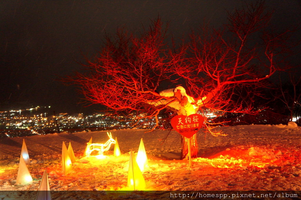 北海道 小樽天狗山ロープウェイ 冬季 點燈 夜景 七色に光る天狗桜のライトアップ 天狗山山頂【森のライトアップ】 天狗山神社ライトアップ